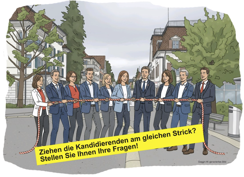 Sandy, Doris und Markus kandidieren für die Gesammterneuerungswahlen vom 8. März 2026.