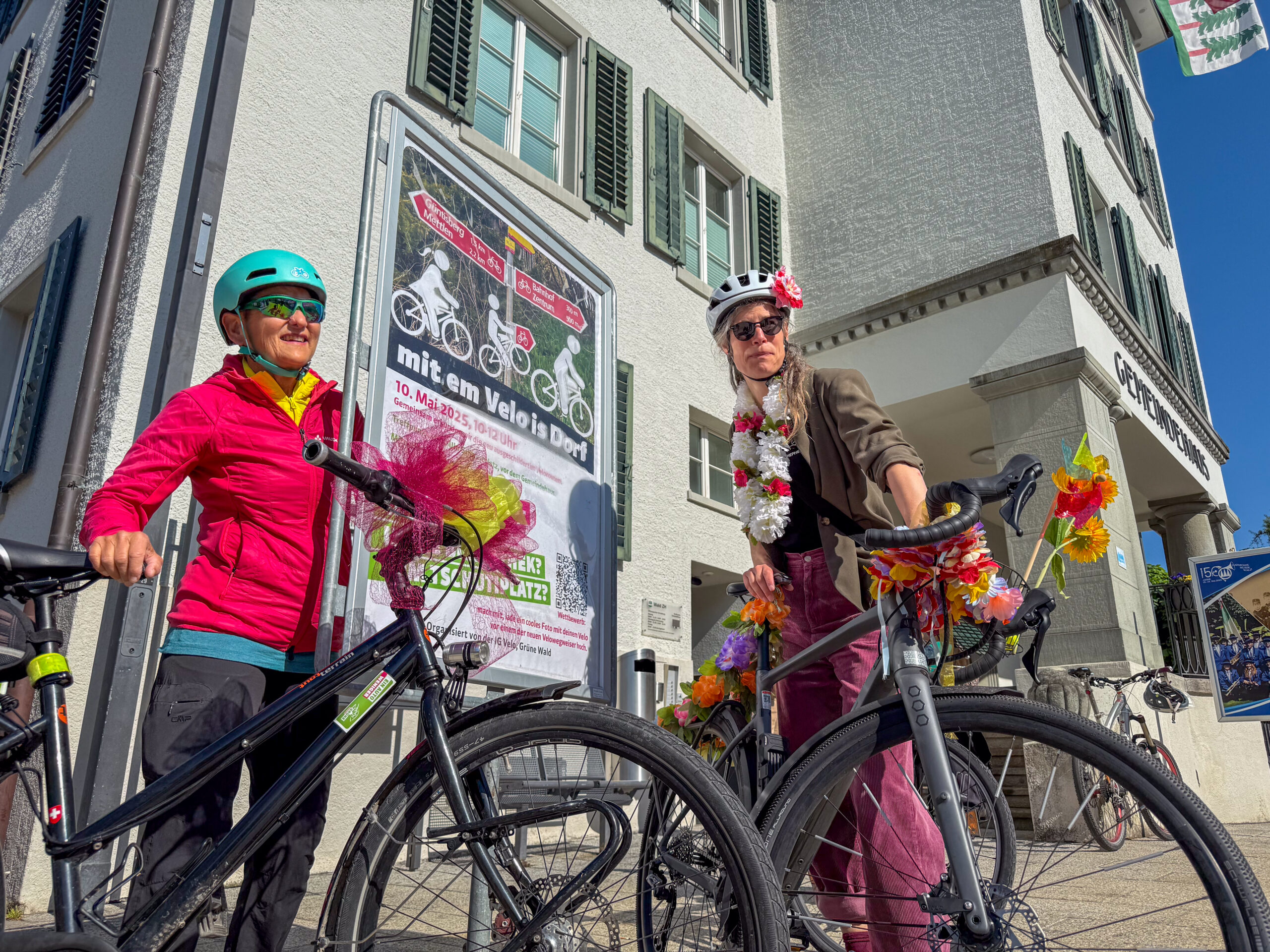 Die Petition wurde im Februar 2022 eingereicht. Doch wir Grünen blieben mit unserer AG Velo auch darüber hinaus aktiv im Dorf präsent. Aus „Mitenand uf’s Velo“ wurde unser Motto „Mit em Velo is Dorf“. Jedes Frühjahr organisierten wir Anlässe, bei denen wir die Teilnehmenden aufforderten, mit geschmückten Velos ins Dorf zu kommen – ein farbenfrohes Spektakel!